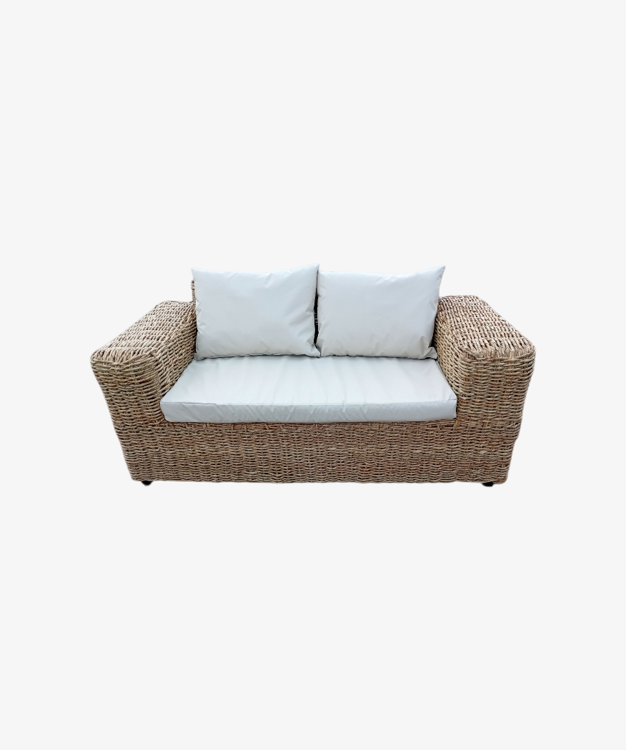 Compact yet luxurious, this 2 seater wicker sofa fits effortlessly into both modern and classic outdoor settings. The white cushions add a refined, bright touch that makes your space feel open and inviting. Whether placed beside a coffee table, paired with other seating, or used as a standalone piece, it enhances the overall appeal of your outdoor décor.