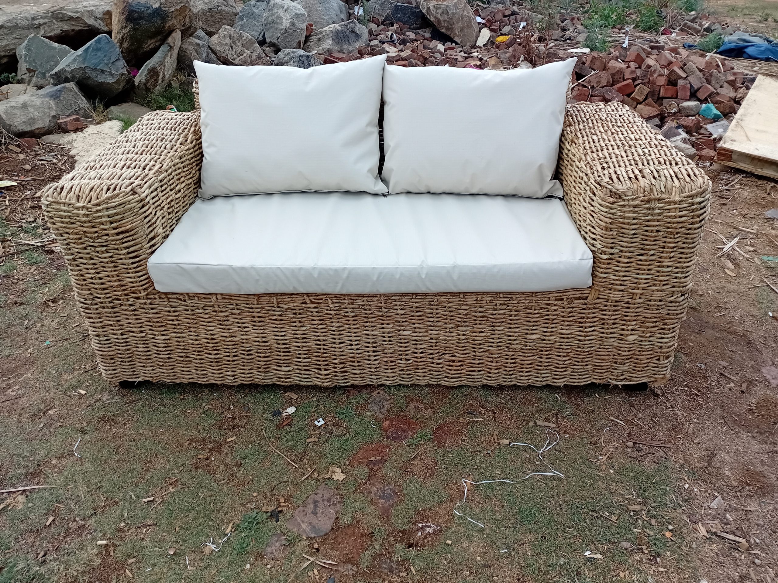 This 2 seater wicker sofa is built with precision using high-quality PE wicker handwoven over a sturdy frame for long-term durability. The weather-resistant wicker ensures strength and flexibility, while the thick white cushions deliver outstanding comfort and style.